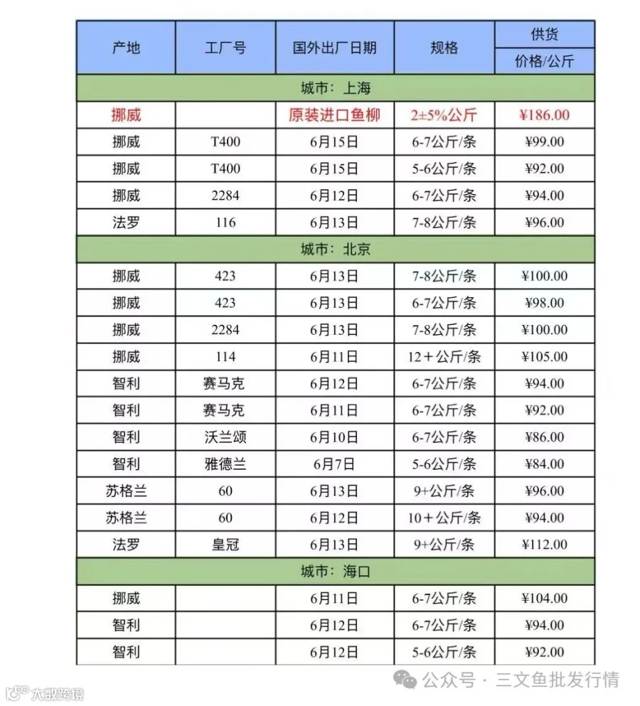 6、欢迎关注[三文鱼批发行情],每天更新当天市场价格,及时分享市场各大重要资讯。