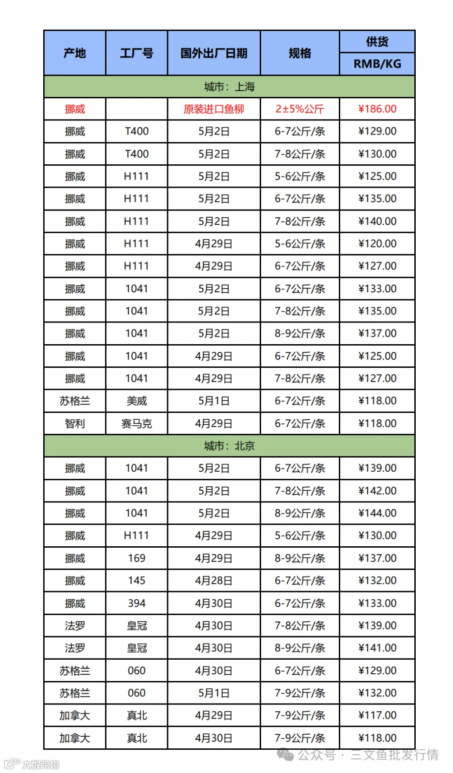 5月6日三文鱼批发行情(上海|北京)