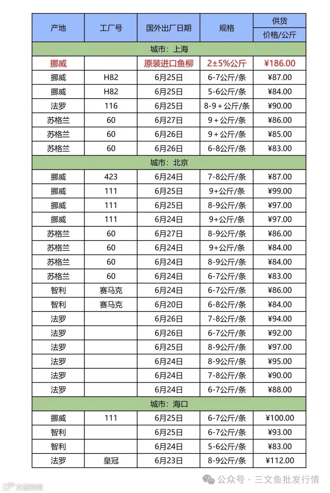 6、欢迎关注[三文鱼批发行情],每天更新当天市场价格,及时分享市场各大重要资讯。