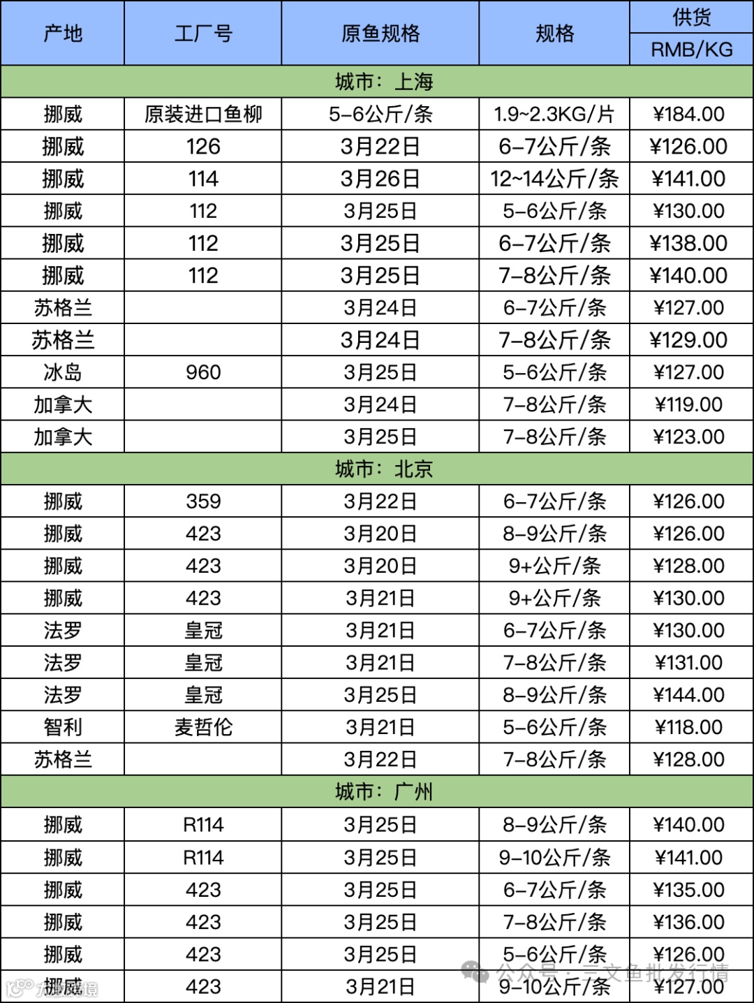 3月29日三文鱼批发行情(上海|北京|广州)