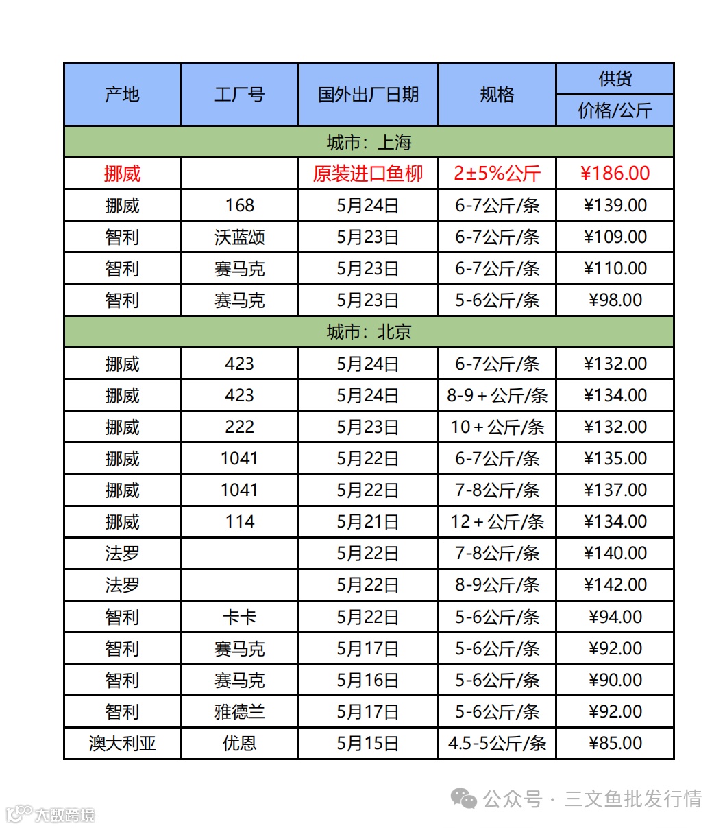 5月29日三文鱼批发行情(上海|北京) 三文鱼批发行情