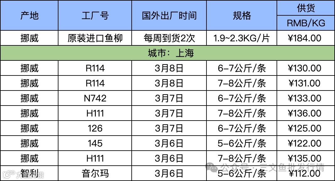 3月11日三文鱼批发行情(上海)