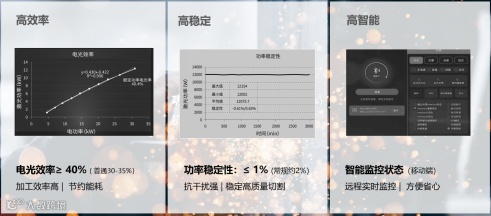 值得一提的是,高性能激光发生器具有高效率、高稳定以及高智能等显著优势。其中,高效率特性体现在电光效率高达40%以上,显著提升加工效率,有效节约能耗;高稳定性则表现在功率波动极小,抗干扰能力强,确保持续稳定的切割作业;高智能特点在于智能监控运行状态,实时可控,为用户提供便捷省心的使用体验。
