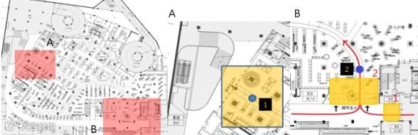 例1)相同时间内的各卖场区域的顾客密集度不同。