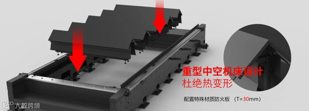 在机床结构上,D-Soar Plus PG 平面坡口光纤激光切割机参照欧洲标准力学结构进行设计,采用全新中空分体式的床身、满焊底座和特殊设计防护装置,有效降低热变形;轻量一体化T型切割桥,柔性加减速,减少对机械的磨损;液压式交换工作台,液压缸总承重可达40吨,抗偏载可达2吨,具有承重强、抗偏载等优点。