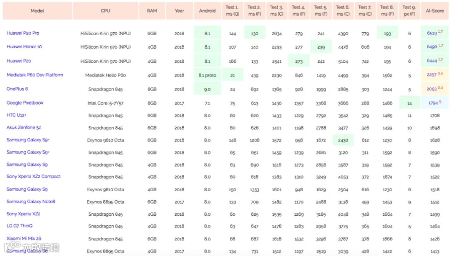 完整列表:http://ai-benchmark.com/ranking.html。