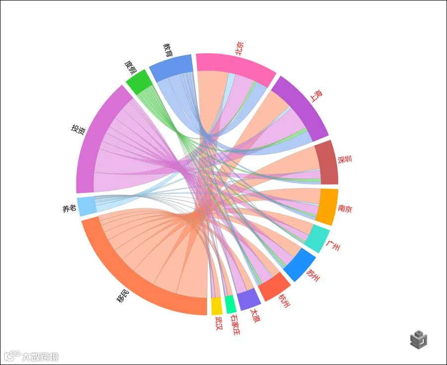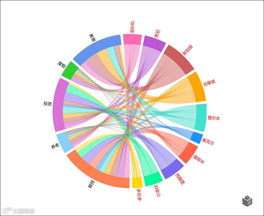 图9-海外置业用途与人群分布关联度和弦图
