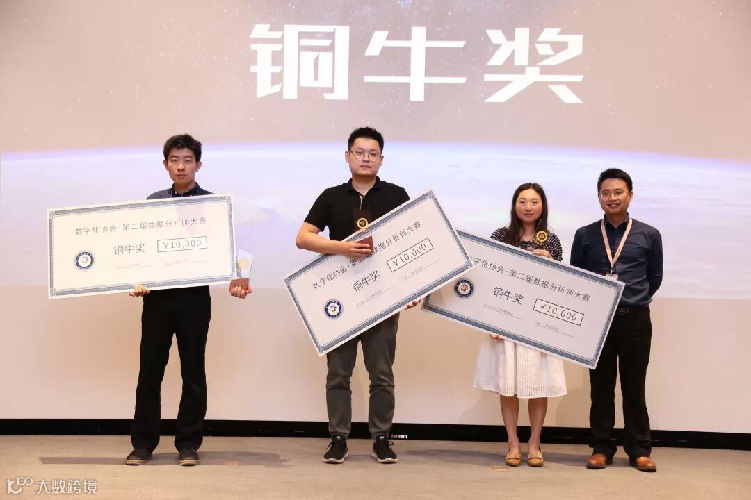 最终,来自VISA的王瑞以作品《从导演看世界电影发展史》荣获本次大赛“金牛奖”,陈晓玉的《纵览全球电影百年》、蓝星宇的《购物中心销售之撬动上游玩家》并列获得“银牛奖”。方盖宇、许熙晨、王嘉喆三位选手获得铜牛奖.由数字化协会丘会长亲自为获奖选手颁奖。