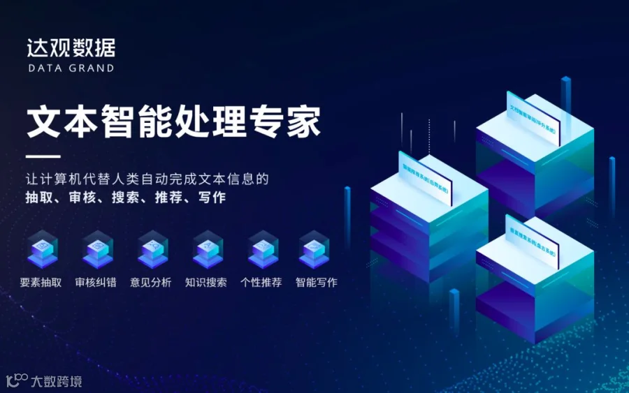 利用先进的文字语义分析技术,达观数据为客户提供文本自动化处理软件系统,功能涵盖文本要素抽取、智能审核、舆情分析、知识搜索、推荐引擎、自动写作等,广泛用于金融,传媒,制造,政府,法律,军工等领域,成功服务了数百家客户,让计算机代替人工实现文本自动处理,大幅提高效率。