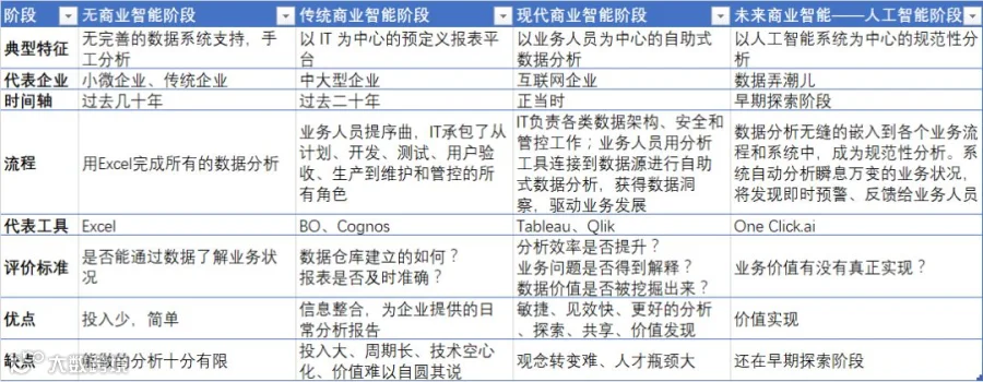 而商业智能阶段又可以分为传统商业智能阶段和现代商业智能阶段。那听上去“传统”自然是要比“现代”早一些。