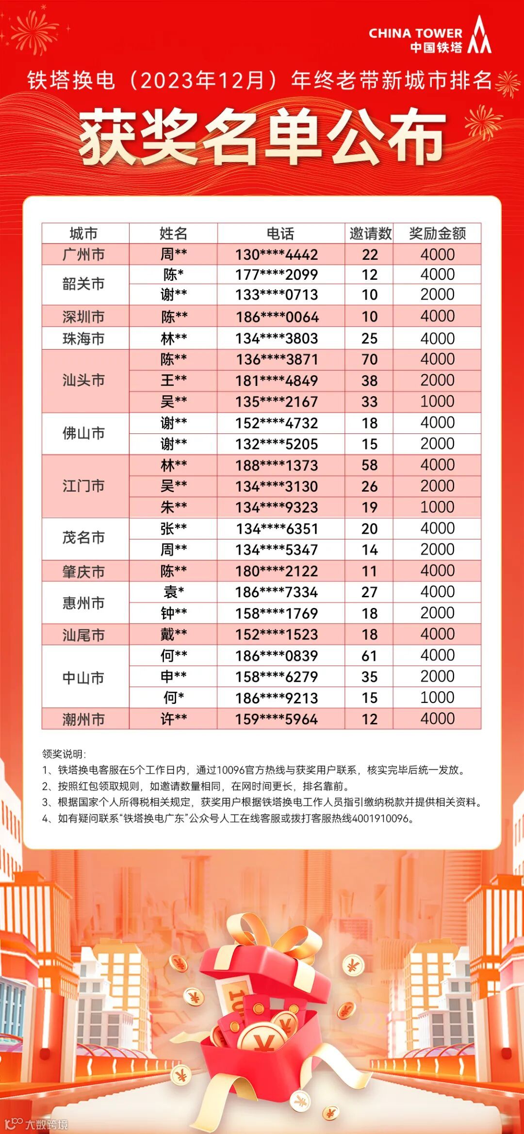铁塔换电12月城市排名奖励来咯!