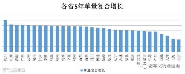 五、贵州、江西、青海成为5年里单量复合增长最高的3大省份