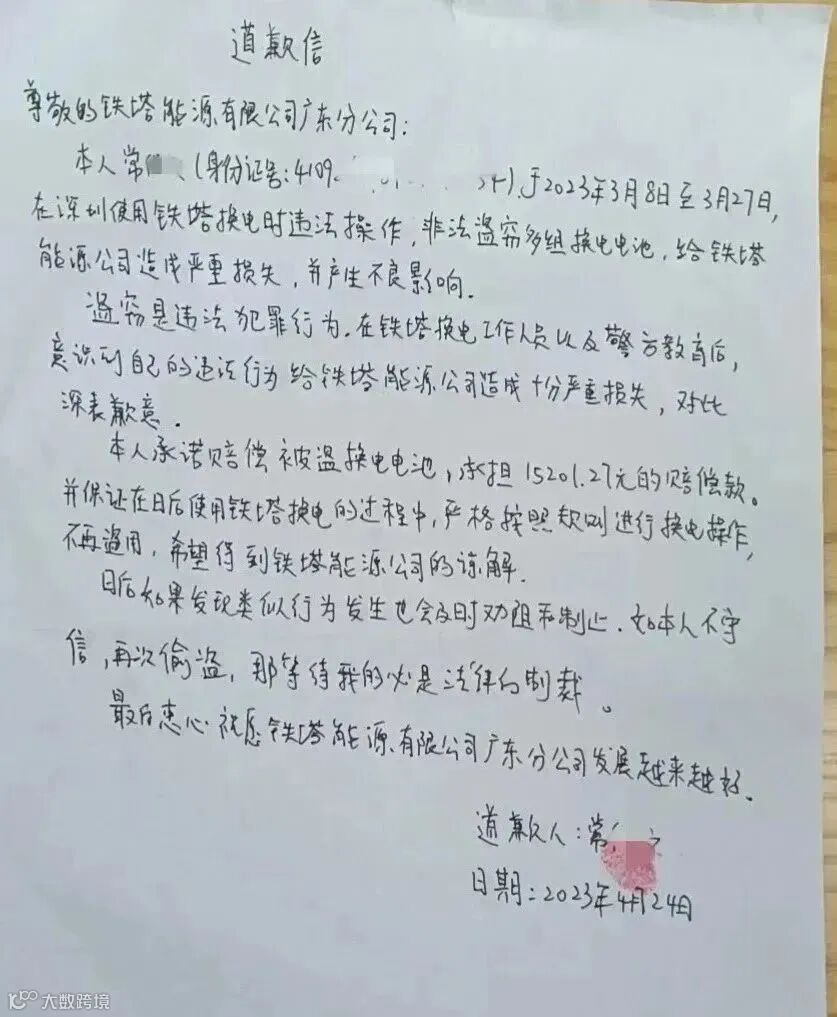 亲笔手写了道歉信