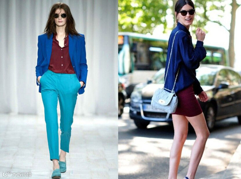 不同的蓝与勃艮第酒红构成了神秘的夜配色,为帅气的中性风增添了一些神秘的力量。