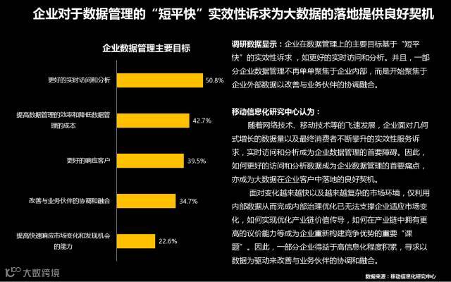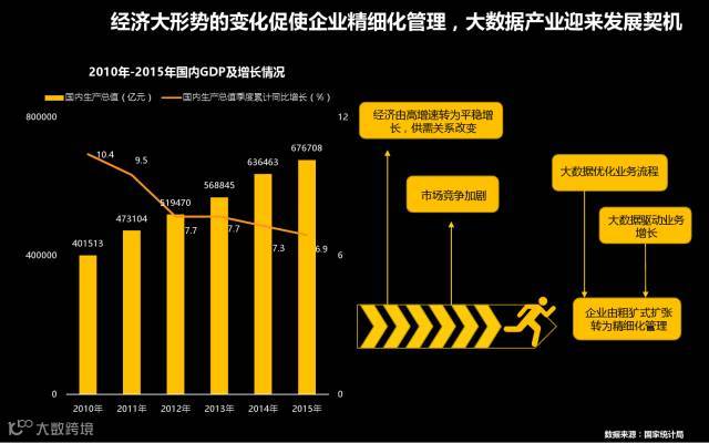 首先,得益于政策红利,大数据基础逐渐完善,为大数据的发展提供了良好的基础条件及推力;其次,我国经济增速下行,市场竞争加剧,企业寻求精细化管理,为实践大数据提供了良好的契机。