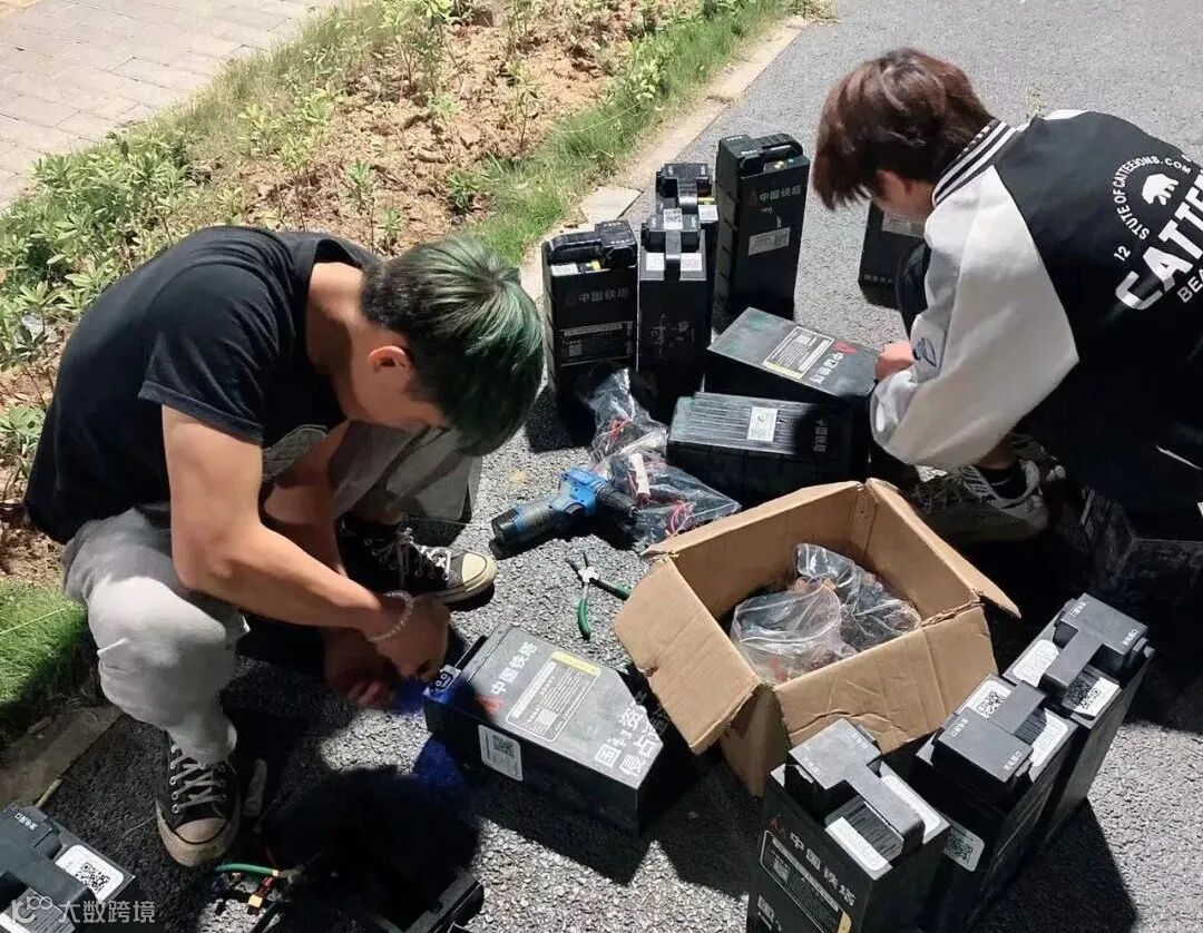 周围散落着一堆电池和元器件。