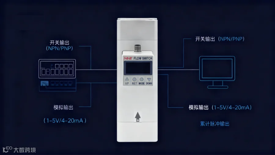 具备开关输出、模拟输出、累计脉冲输出多路信号,可灵活对接PLC、数据采集器等设备。开关输出支持 NPN/PNP 开路集电极切换,模拟输出可选 1~5V 电压或 4~20mA 电流信号,累计脉冲输出可精准记录流量数据,轻松实现自动化调控和数据追溯。