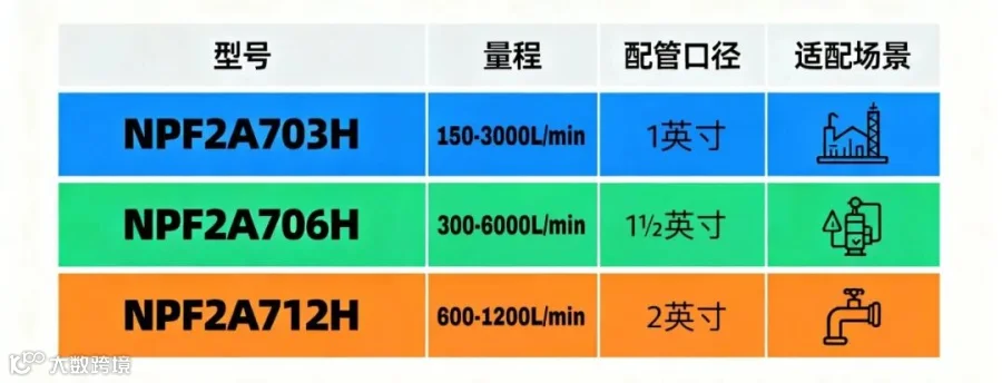 •NPF2A712H:600-12000L/min,应对超大流量检测