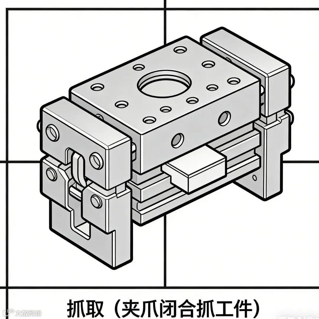 3. 抓取阶段:夹爪接触工件后,缓冲装置吸收冲击,保持稳定夹持力;