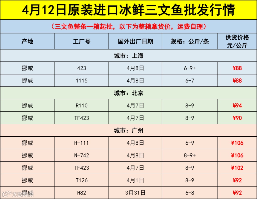 导读:【4.12进口冰鲜三文鱼批发行情】