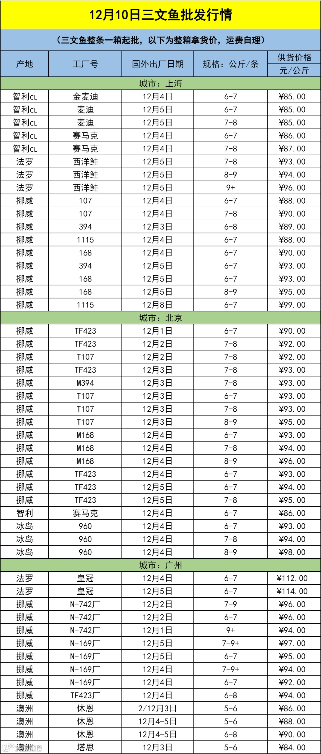 12月10日三文鱼批发行情(上海|北京|广州)