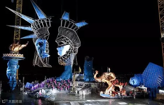 2009/2010,“自由女神”,纽约自由女神像的脸部和火炬造型以及两只15米高的足部造型竖立在舞台后端。