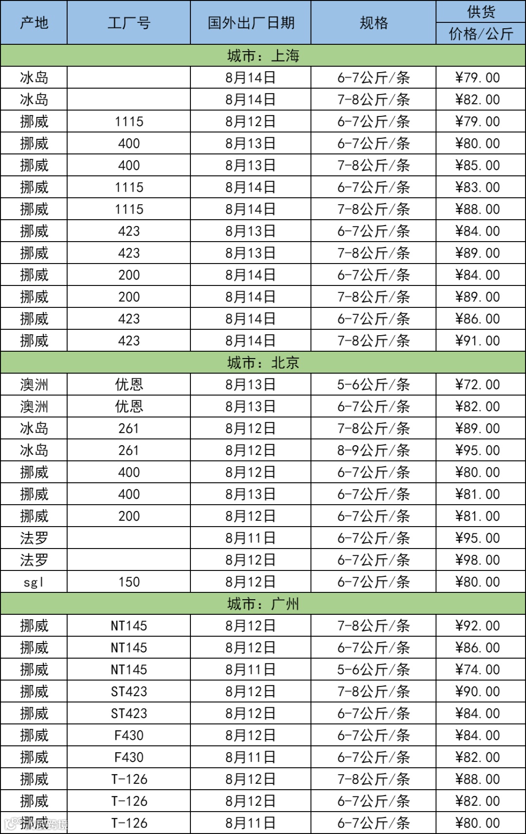 8月17日三文鱼批发行情(上海|北京|广州)
