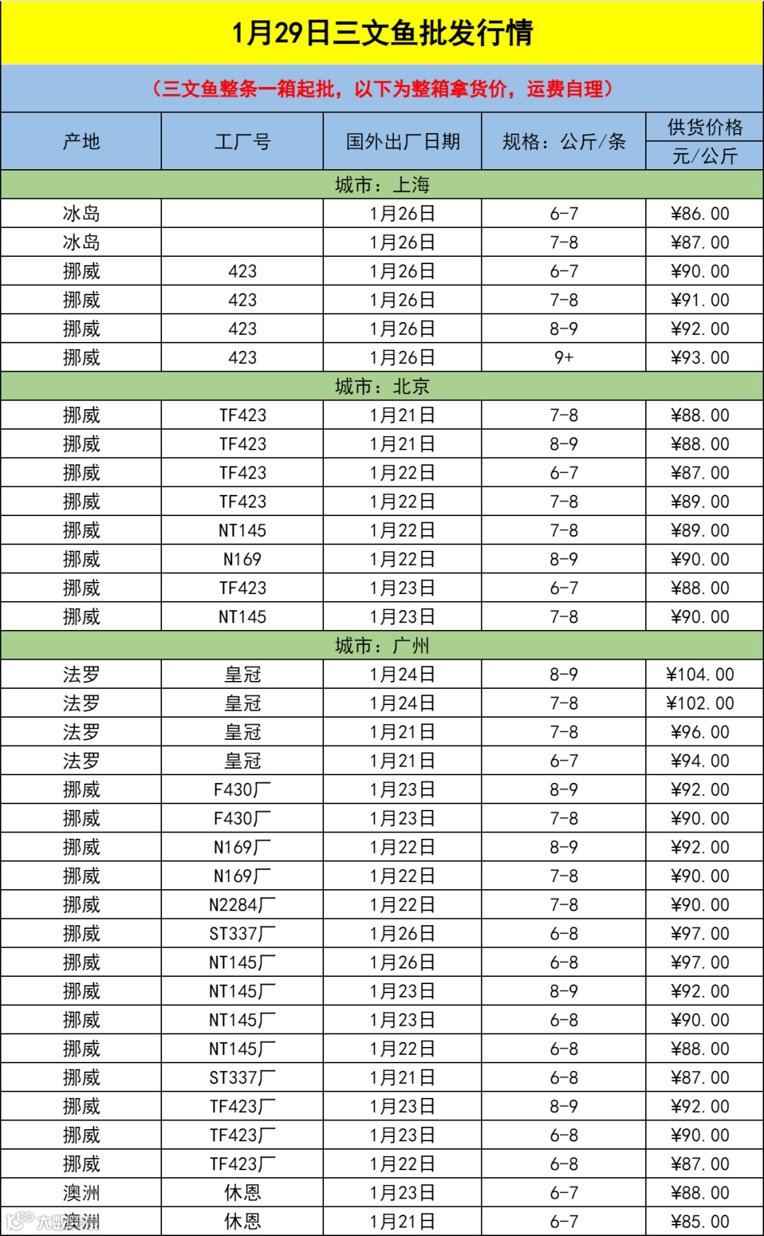 【1.29三文鱼批发行情】进口冰鲜三文鱼现货,国内最新日期!