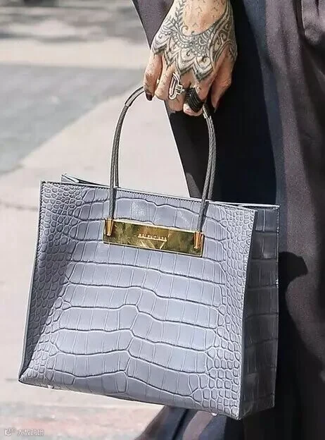 Balenciaga 2014秋冬秀场上,我们看到了华裔设计师Alexander Wang“最懂女人心”的一面。大大小小的“购物包”看的人开心,买的人更开心。包身方正有型;鳄鱼皮的珍贵面料也是让人大呼过瘾;金属手柄更是展现出超强的时尚感和未来感。