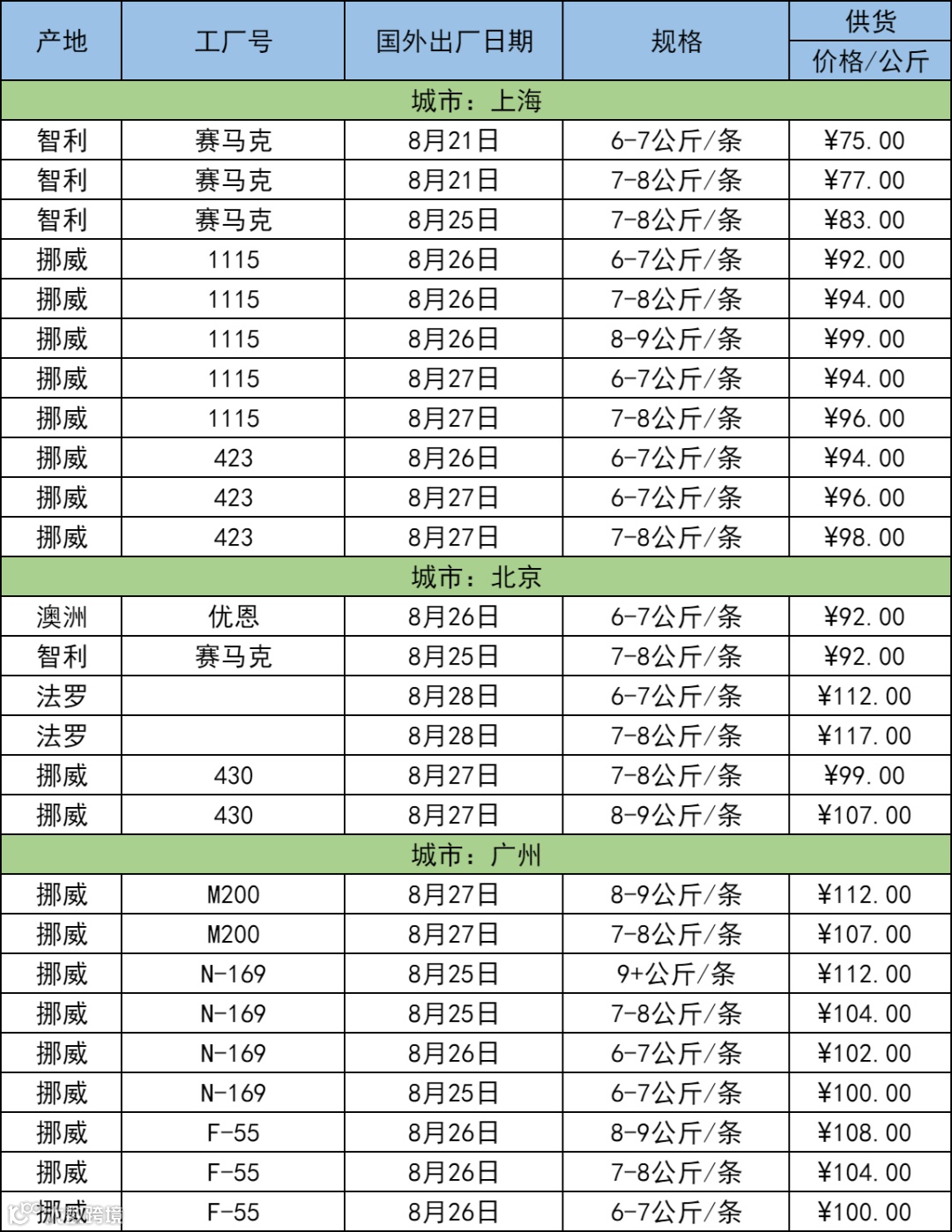 8月31日三文鱼批发行情(上海|北京|广州) 三文鱼批发行情