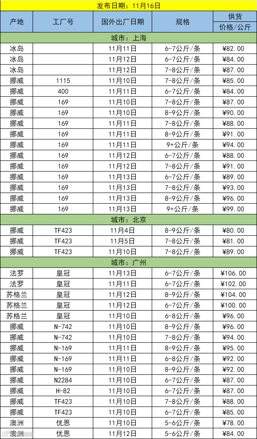 11月16日三文鱼批发行情(上海|北京|广州) 三文鱼批发行情