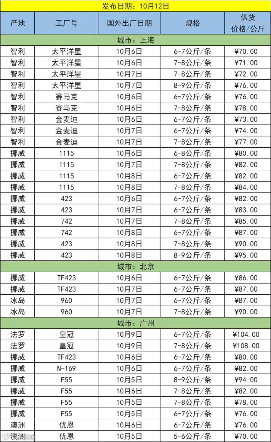 10月12日三文鱼批发行情(上海|北京|广州) 三文鱼批发行情