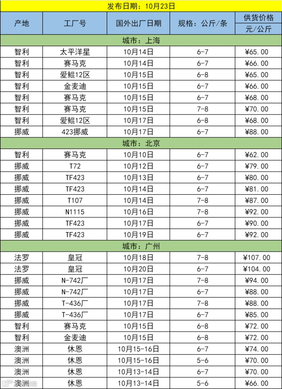 10月23日三文鱼批发行情(上海|北京|广州) 三文鱼批发行情