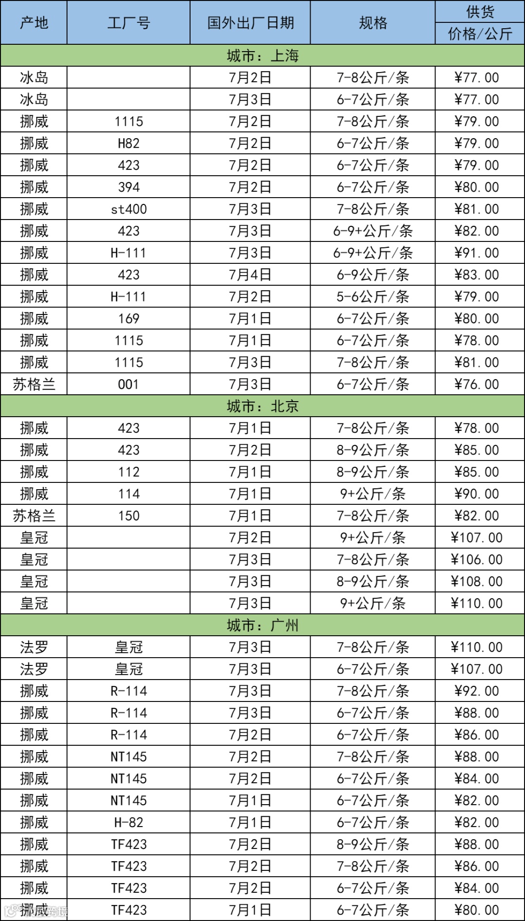 7月7日三文鱼批发行情(上海|北京|广州)