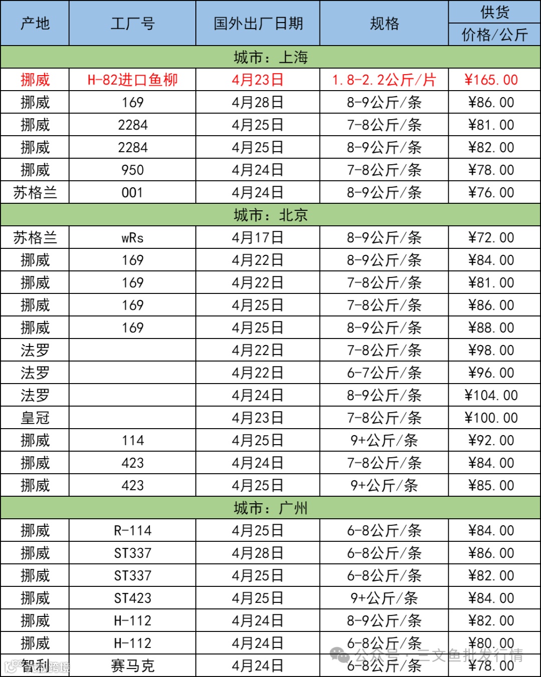 4月30日三文鱼批发行情(上海|北京|广州)