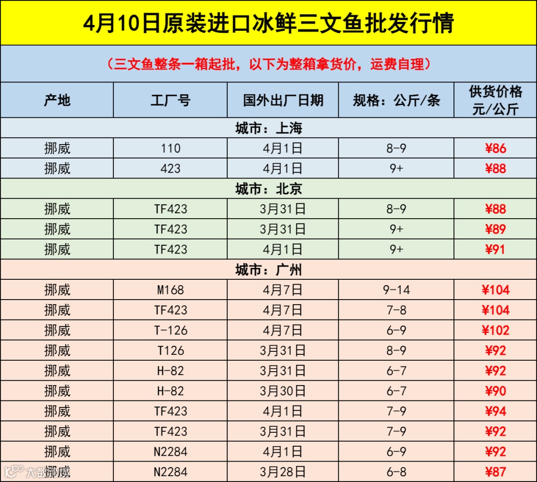 导读:【4.10进口冰鲜三文鱼批发行情】