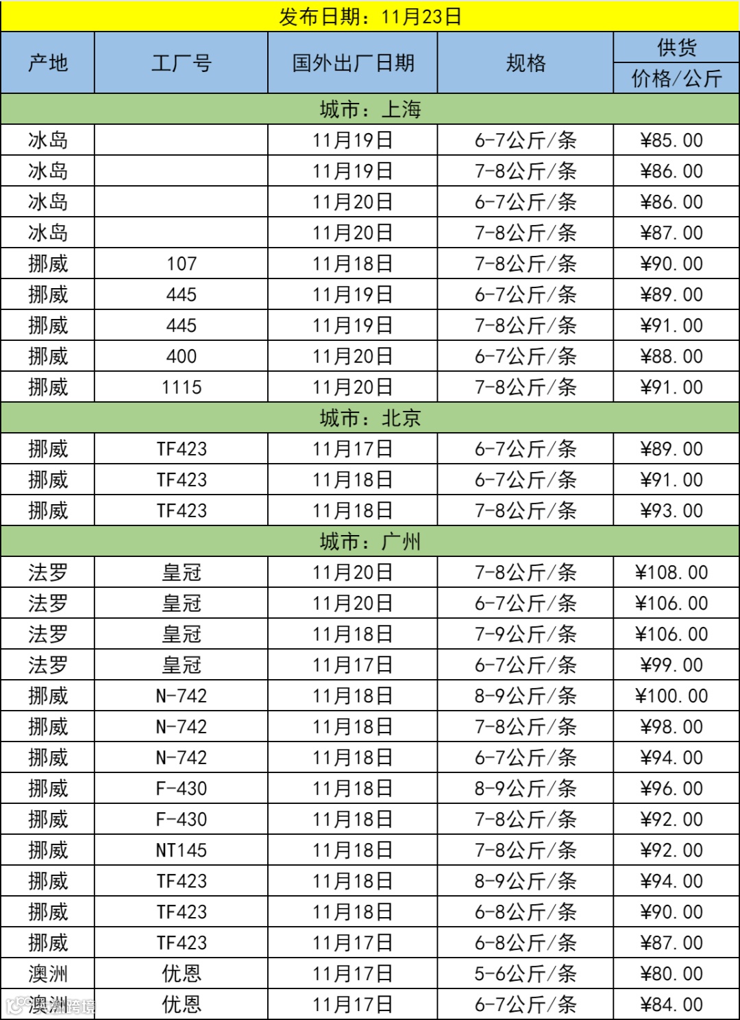 11月23日三文鱼批发行情(上海|北京|广州) 三文鱼批发行情