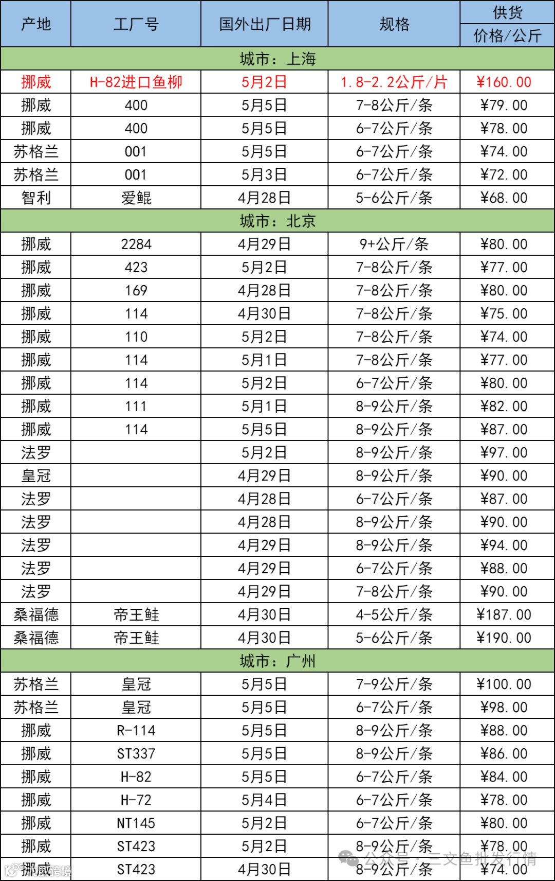欢迎关注[三文鱼批发行情],每天更新当天市场价格,及时分享市场各大重要资讯