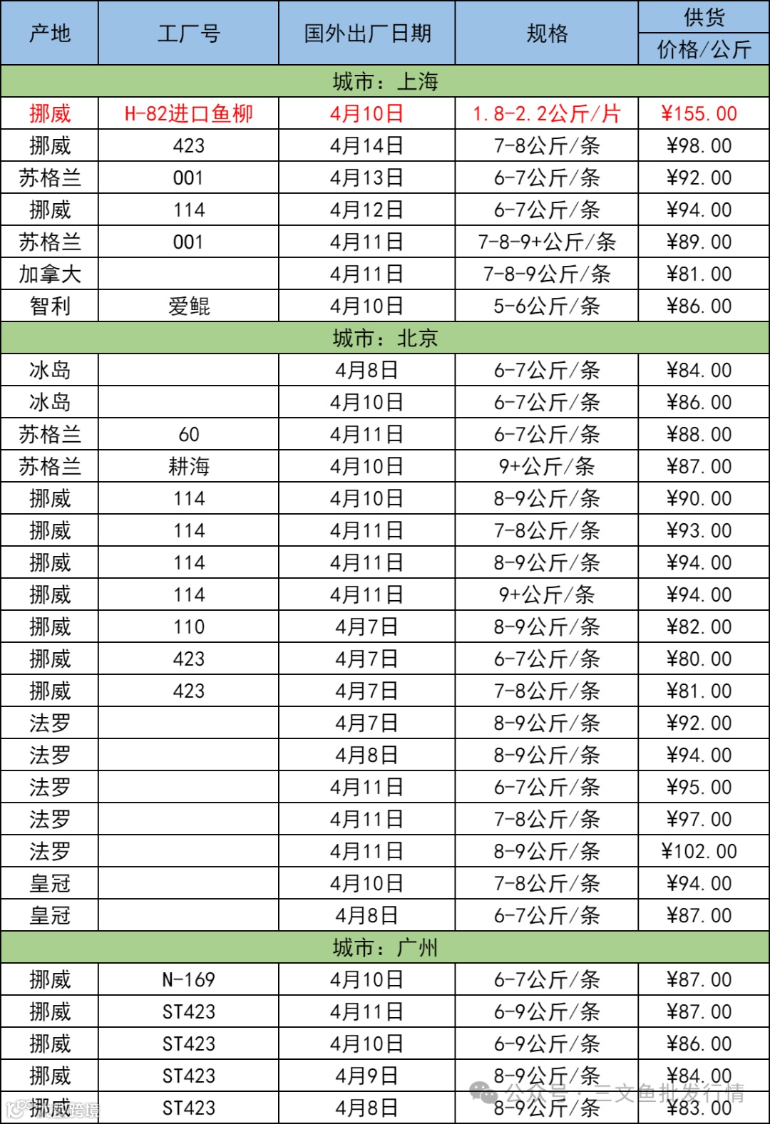 4月16日三文鱼批发行情(上海|北京|广州)
