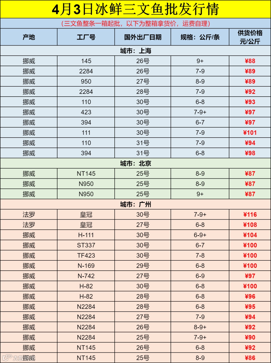 导读:【4.3进口冰鲜三文鱼批发行情】