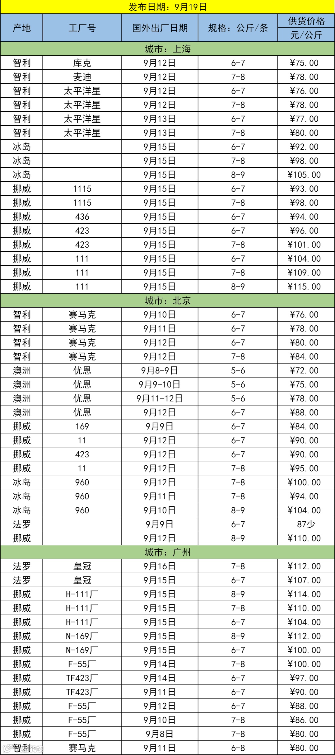 9月19日三文鱼批发行情(上海|北京|广州) 三文鱼批发行情