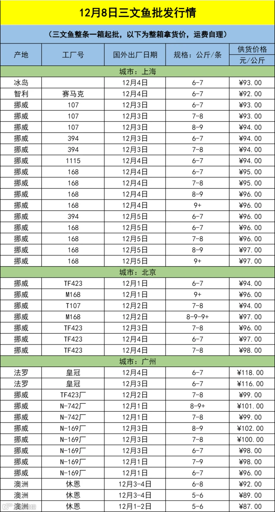 12月8日三文鱼批发行情(上海|北京|广州) 三文鱼批发行情