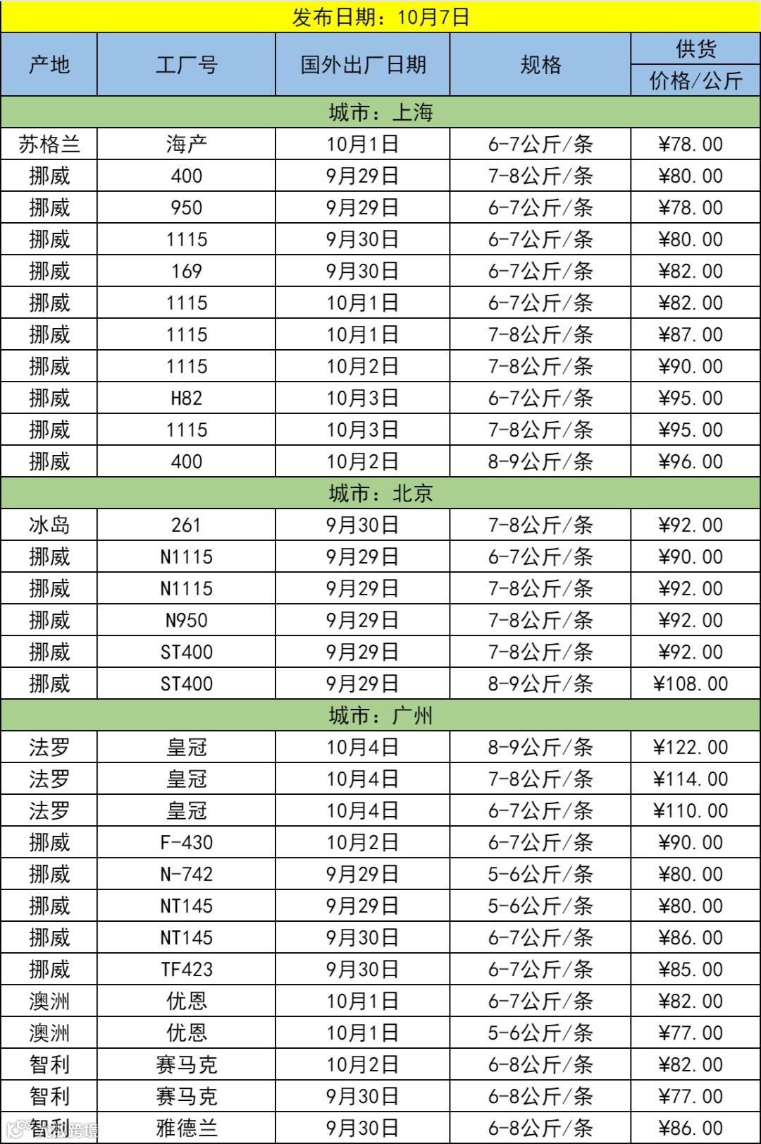 10月7日三文鱼批发行情(上海|北京|广州) 三文鱼批发行情