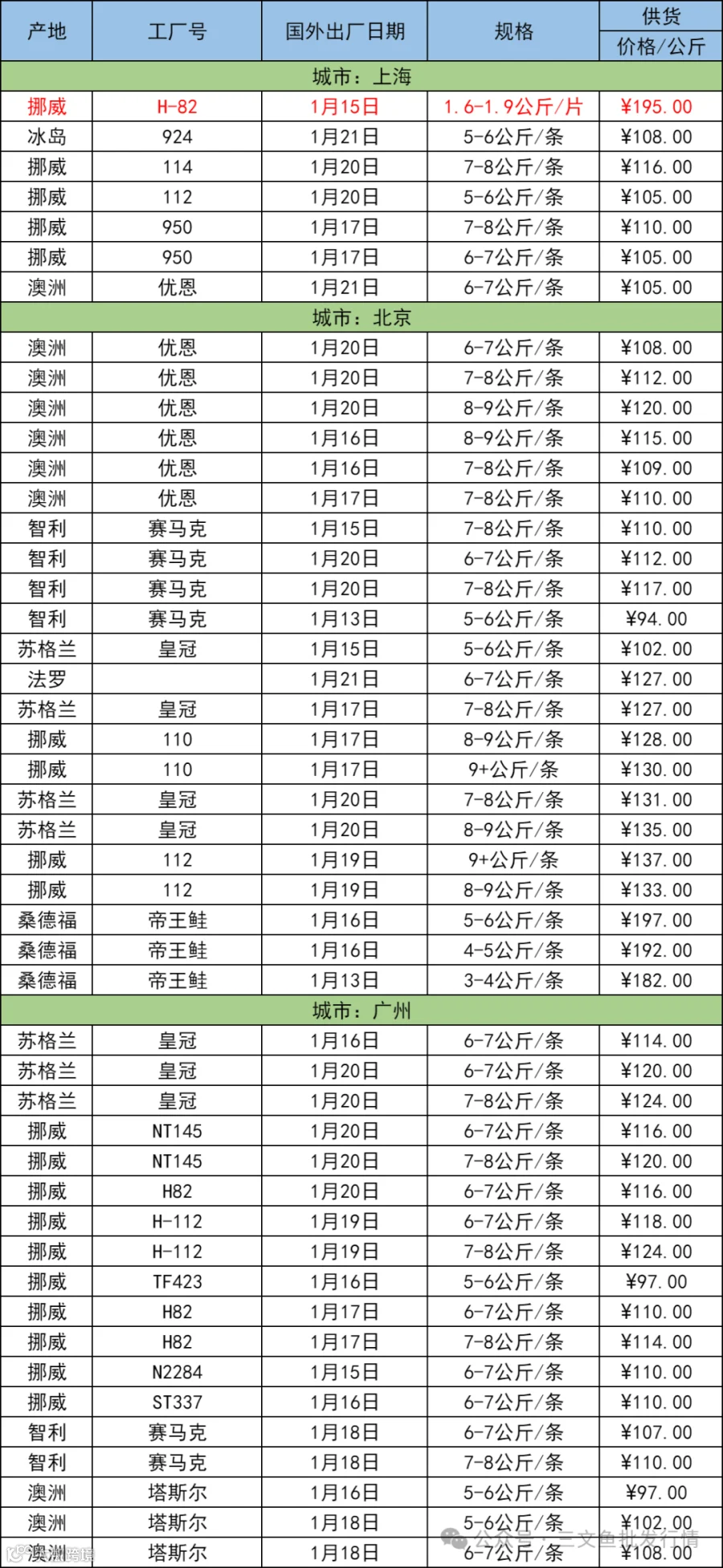 1月24日三文鱼批发行情(上海|北京|广州)