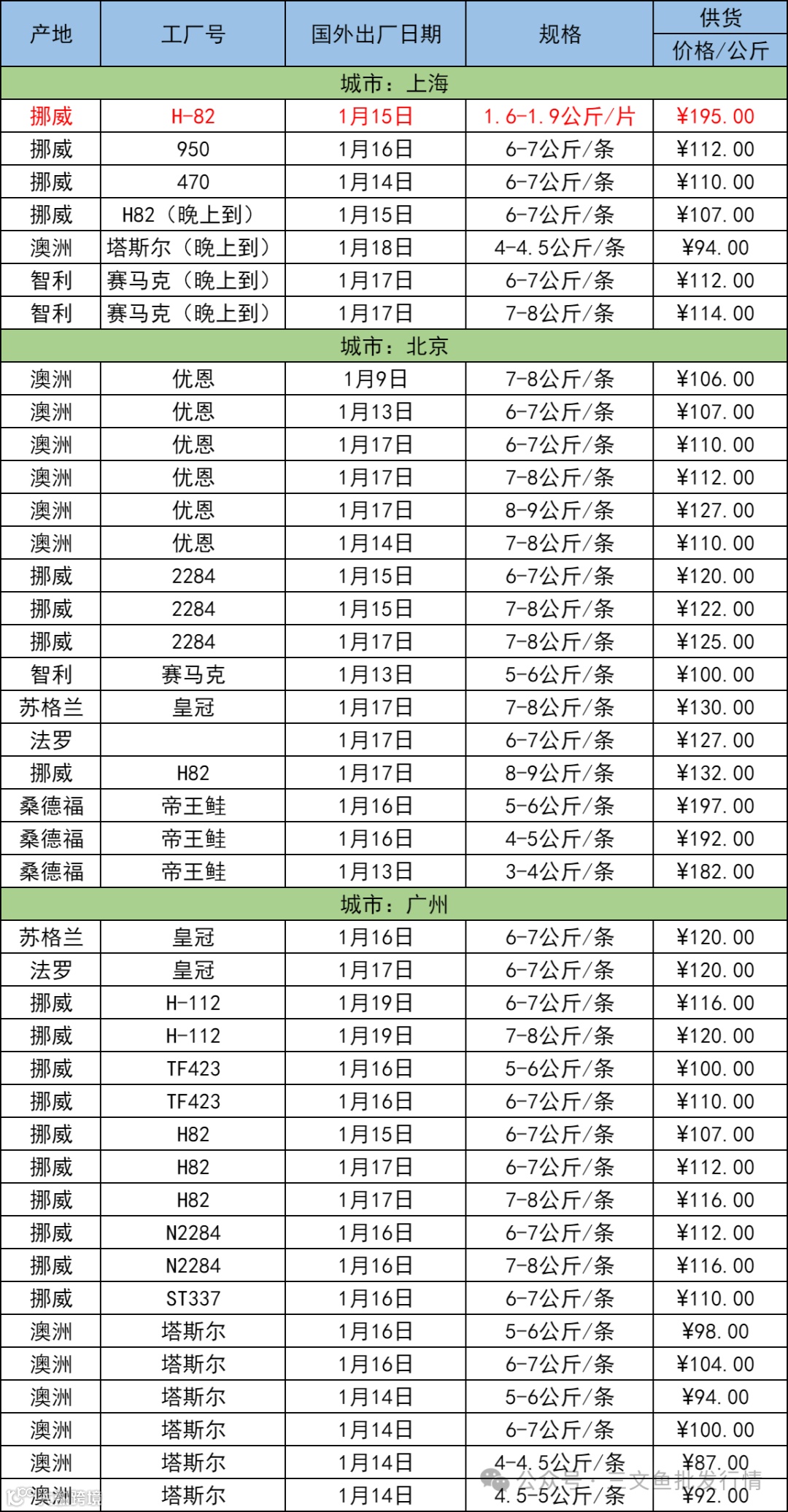 1月22日三文鱼批发行情(上海|北京|广州)