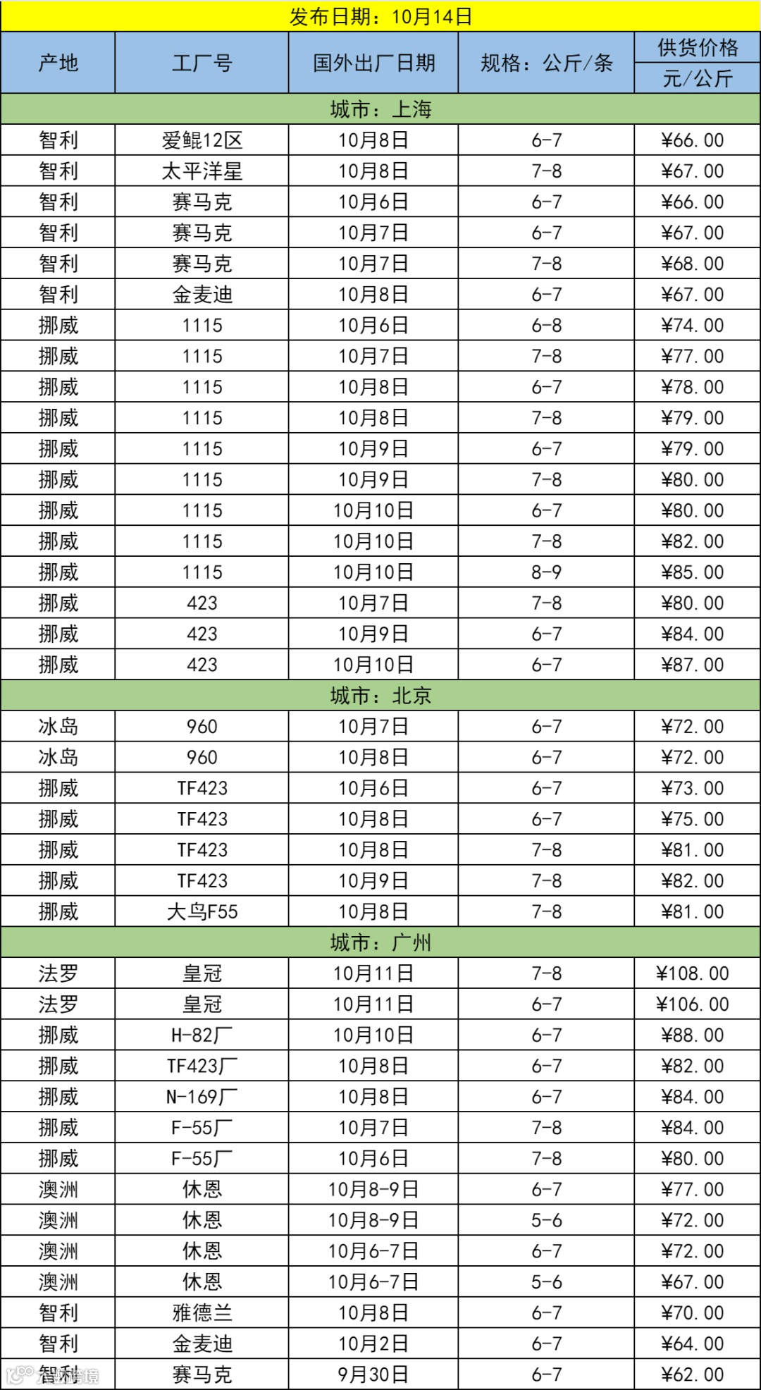 10月14日三文鱼批发行情(上海|北京|广州) 三文鱼批发行情
