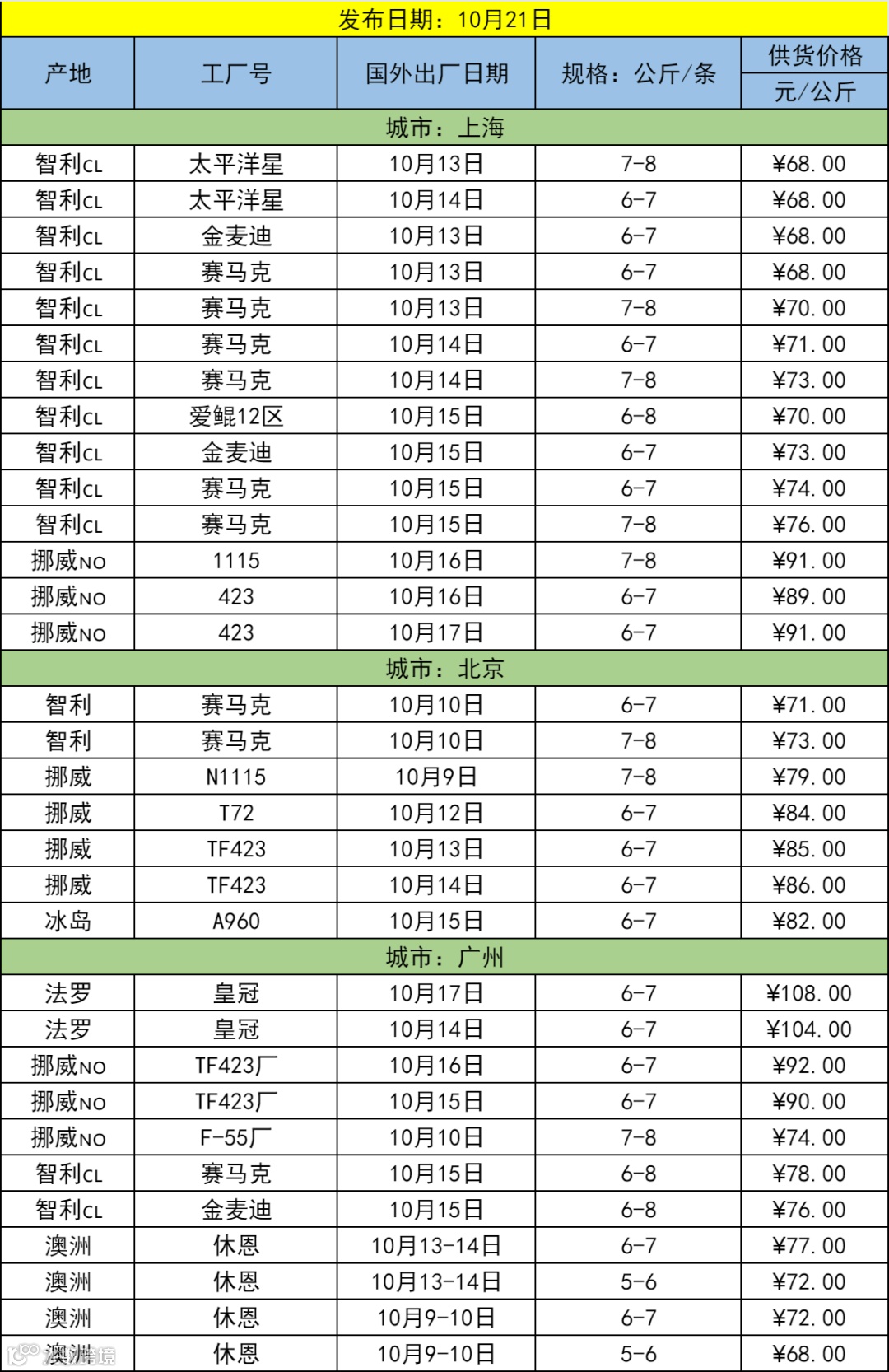 10月21日三文鱼批发行情(上海|北京|广州) 三文鱼批发行情