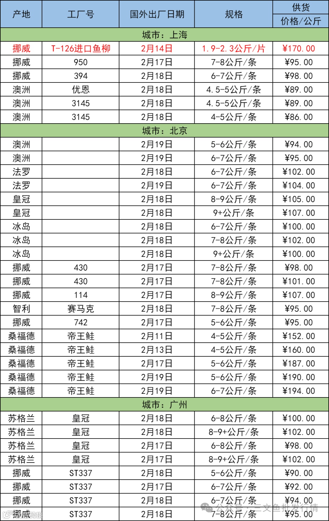 2月22日三文鱼批发行情(上海|北京|广州)