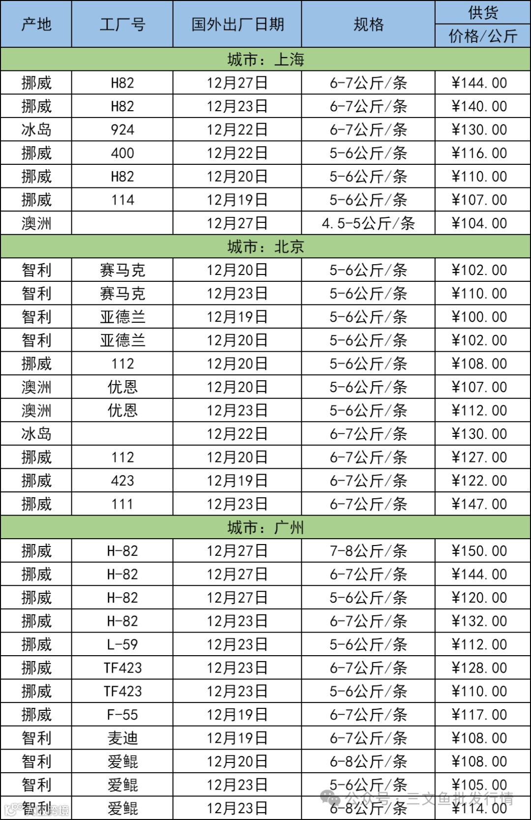 12月30日三文鱼批发行情(上海|北京|广州) 三文鱼批发行情