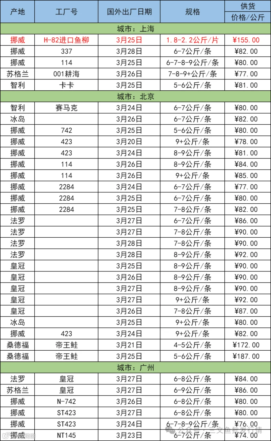 3月31日三文鱼批发行情(上海|北京|广州) 三文鱼批发行情